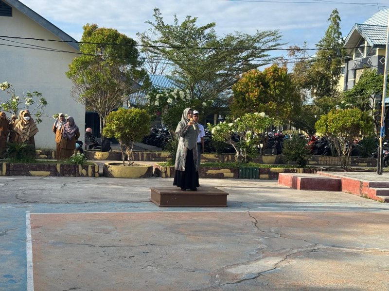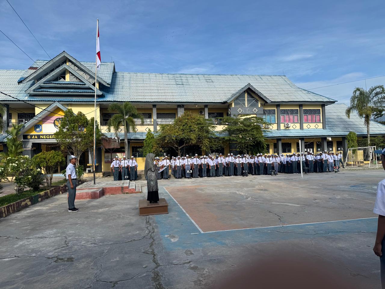 Sosialisasi dan Pendidikan Pemilih Berkelanjutan, Komisioner KPU Luwu Utara Sebagai Pembina Upacara di UPT SMA Negeri 8 Luwu Utara