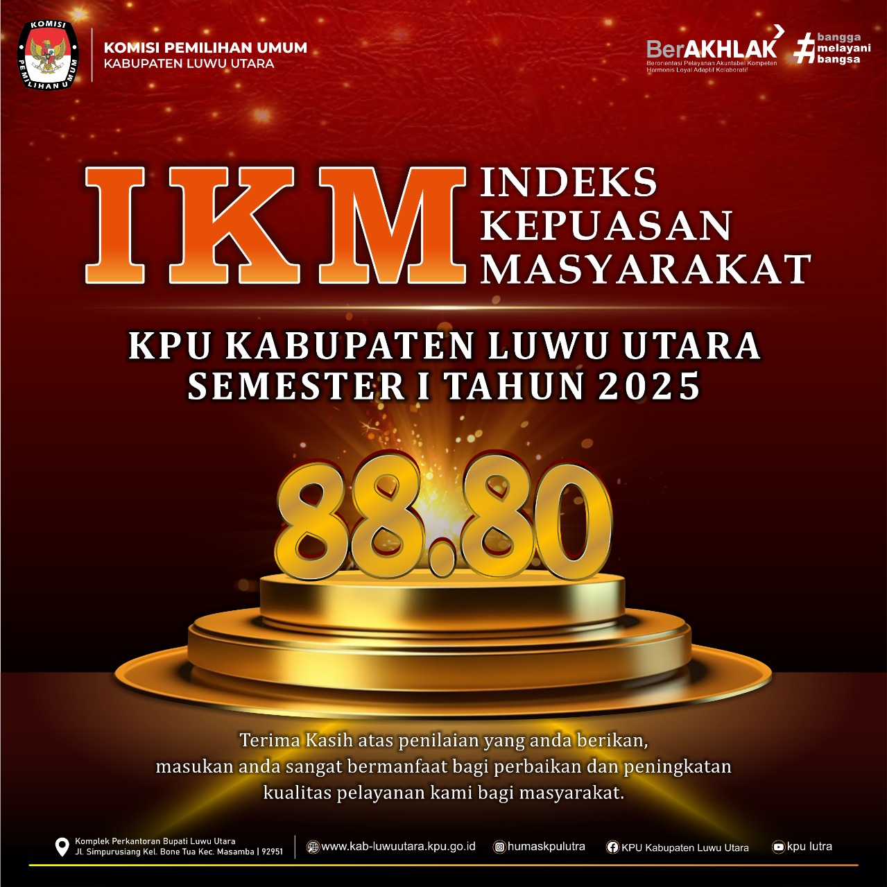 Pengumuman Hasil Survei Kepuasan Masyarakat (SKM) KPU Lutra Periode Januari-Juni (Semester I) Tahun 2025