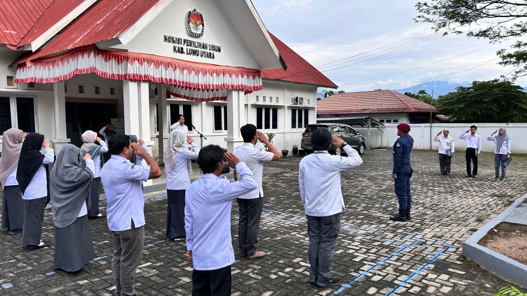Masamba, kab-luwuutara.kpu.go.id - Komisi Pemilihan Umum (KPU) Kabupaten Luwu Utara melakukan apel pagi rutin, kegiatan berlangsung di Halaman Kantor KPU Luwu Utara, Senin (30/6/2025).