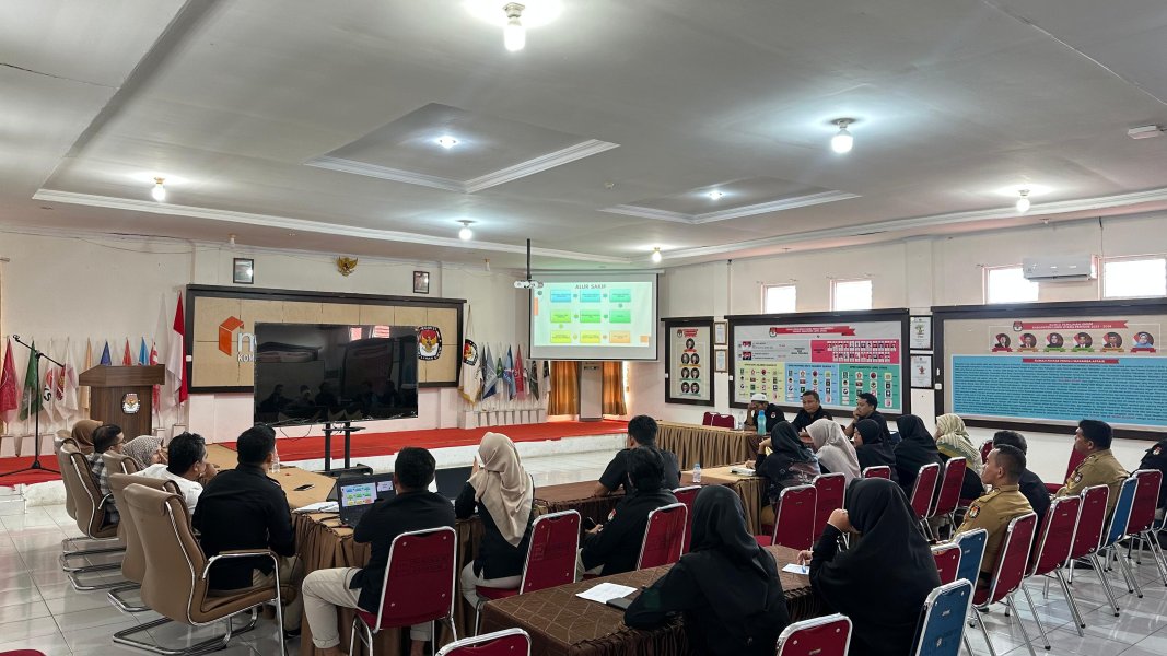 Rapat dibuka oleh anggota KPU Divisi Perencanaan Data dan Informasi Ayyub Siswanto, mewakili ketua KPU Hayu Vandy dihadiri oleh Anggota KPU Divisi Parmas dan SDM Mahlisa, Divisi Teknis Penyelenggaraan Mahsyar Divisi Hukum dan Pengawasan Umung Kallang, Sekretaris KPU Fitria, para Kasubag dan ASN PNS dan ASN PPPK.