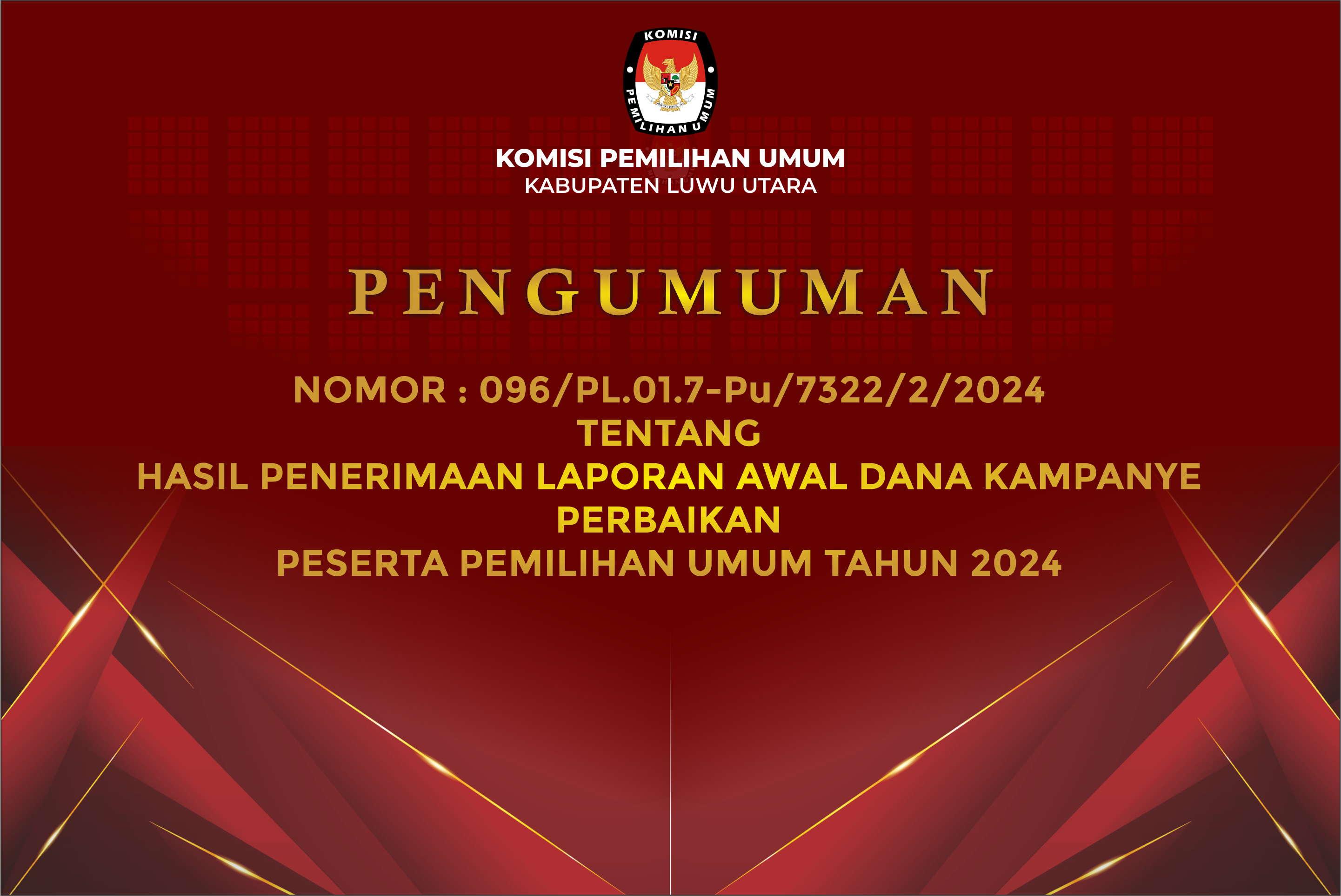 Kamu perlu tahu, KPU Kabupaten Luwu Utara telah menerima Laporan Awal Dana Kampanye (LADK) Perbaikan Partai Politik Peserta Pemilu Tahun 2024, Masamba-Jumat (12/01/2024).