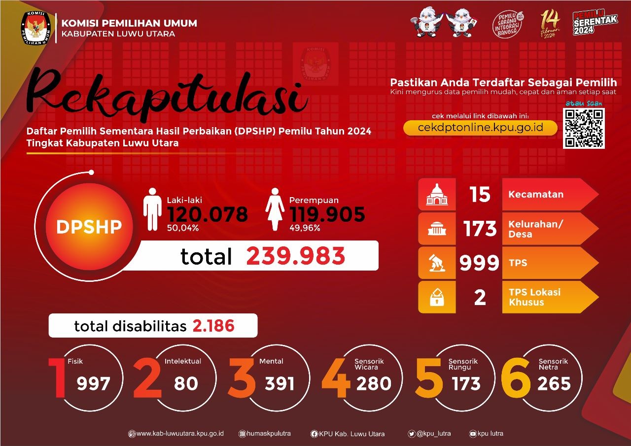 Pengumuman Rekapitulasi Daftar Pemilih Hasil Perbaikan Daftar Pemilih Sementara (DPS) Tingkat Kabupaten Luwu Utara Pemilu Tahun 2024 Rabu, 17 Mei 2023 00:00 1792 Bersama ini Kami Umumkan Rekapitulasi Daftar Pemilih Hasil Perbaikan DPS Tingkat Kabupaten Luwu Utara Untuk di Ketahui Klik disini,..... Bagikan: Dilihat 1,792 Kali.