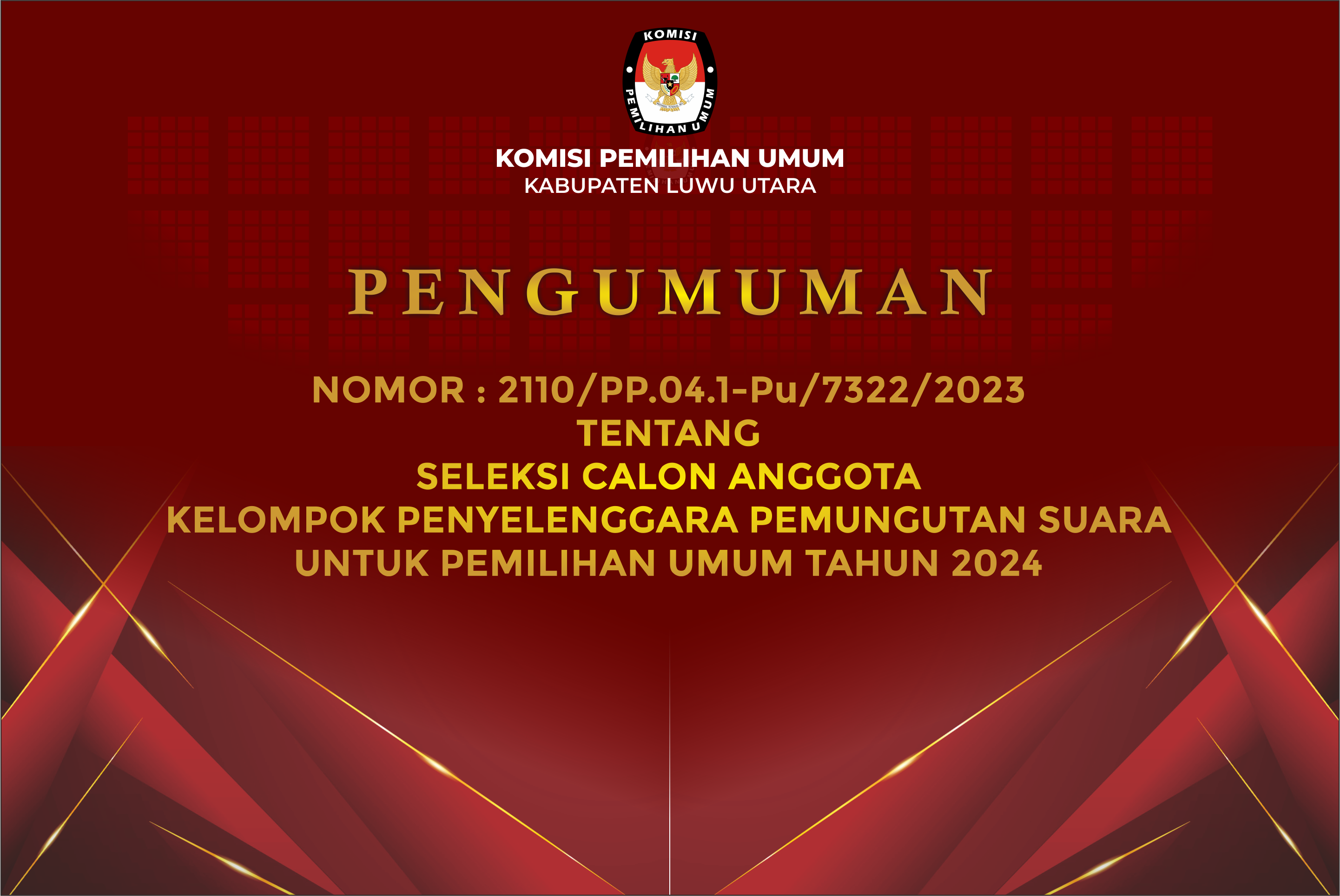 Pengumuman Seleksi Calon Aggota Kelompok Penyelenggara Pemungutan Suara (KPPS) untuk Pemilihan Umum Tahun 2024
