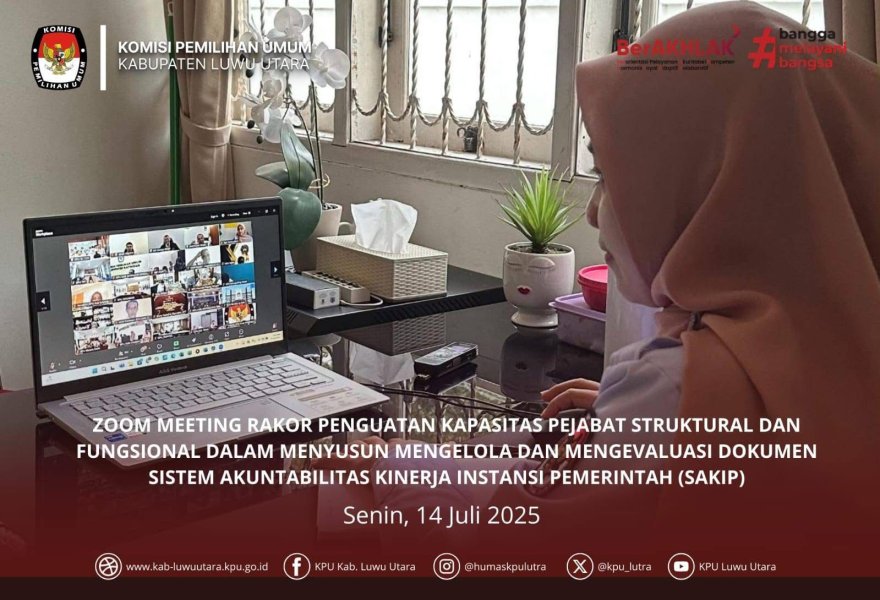 Masamba, kab-luwuutara.kpu.go.id - Dalam rangka pemahaman dan kemampuan Aparatur Sipil Negara (ASN) dalam mengelola dan menerapkan Sistem Akuntabilitas Kinerja Instansi Pemerintah (SAKIP) Komisi Pemilihan Umum (KPU) Kabupaten Luwu Utara (Lutra) menghadiri Rapat Koordinasi (Rakor) Penguatan Kapasitas Pejabat Struktural dan Fungsional dalam Menyusun, Mengelola, dan Mengevaluasi Dokumen Sistem Akuntabilitas Kinerja Instansi Pemerintah (SAKIP) Tahun 2025.
