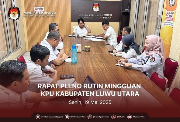 Masamba, kab-luwuutara.kpu.go.id - Komisi Pemilihan Umum (KPU) Kabupaten Luwu Utara (Lutra) melakukan Rapat Pleno Rutin Mingguan kegiatan berlangsung di Aula Media Center kantor KPU Luwu Utara Senin, (19/5/2025)